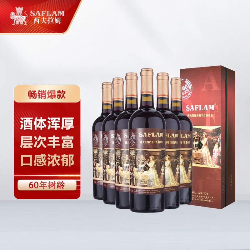 西夫拉姆红酒 酒堡60年树龄赤霞珠 干红葡萄酒 750ml*6盒 整箱装 年货送礼价格:559.00元!