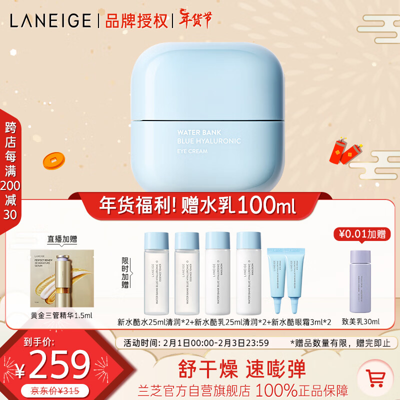 兰芝新水酷透明质酸嘭润修护眼霜25ml弹力修护玻尿酸小蓝盾新年礼物价格:289.00元!