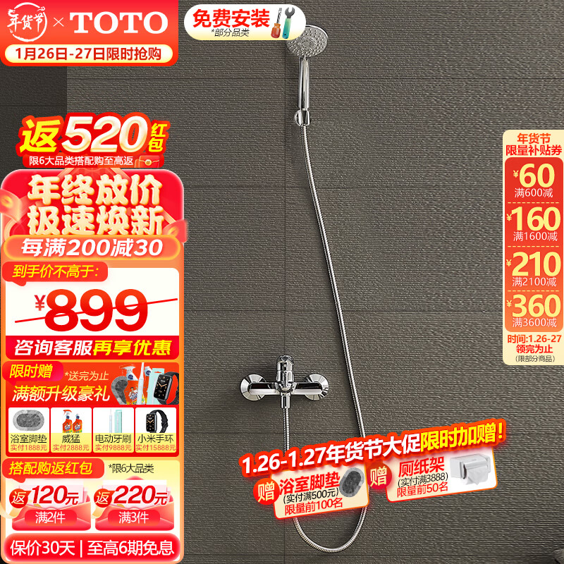 TOTO花洒 挂墙式多功能手持花洒龙头 淋浴花洒套装TBS04302 (05-H)价格:1049.00元!