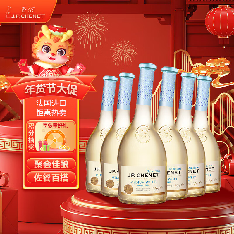 香奈(J.P.CHENET)甜蜜系列半甜白葡萄酒 750ml*6 整箱装 年货送礼价格:618.00元!