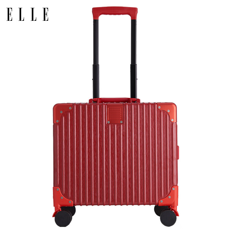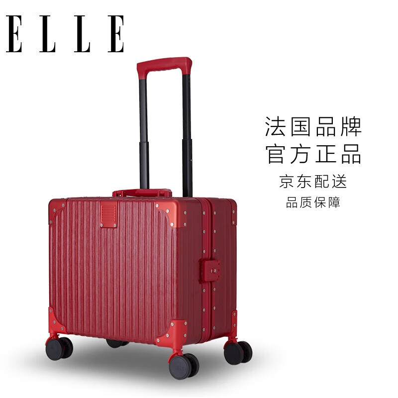 ELLE17英寸法国时尚品牌自营红色行李箱结婚出行拉杆箱铝框防刮耐用TSA密码锁旅行箱男女万向轮密码箱价格:429.00元!
