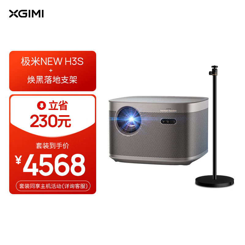极米NEW H3S 套装1 投影仪家用+焕黑落地支架价格:4568.00元!