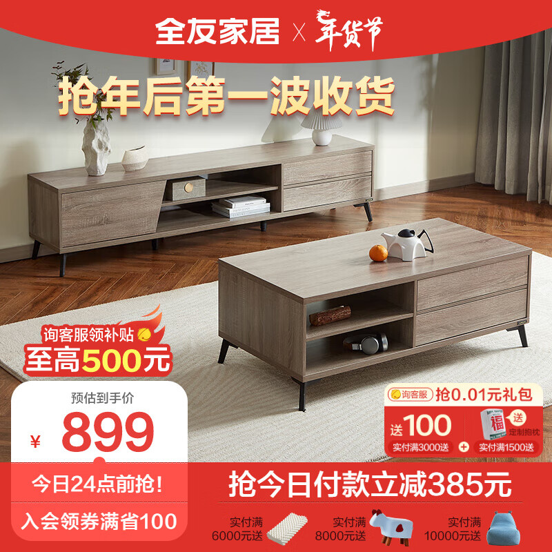 全友家居 现代简约茶几电视柜 木纹多区储物收纳客厅家具670103A价格:1284.29元!