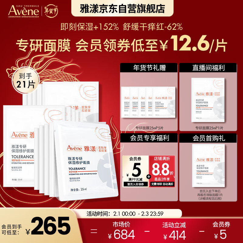 雅漾(Avene)专研保湿修护面膜15片 快速舒缓泛红 细致提亮 修复屏障 贴片面膜价格:270.00元!