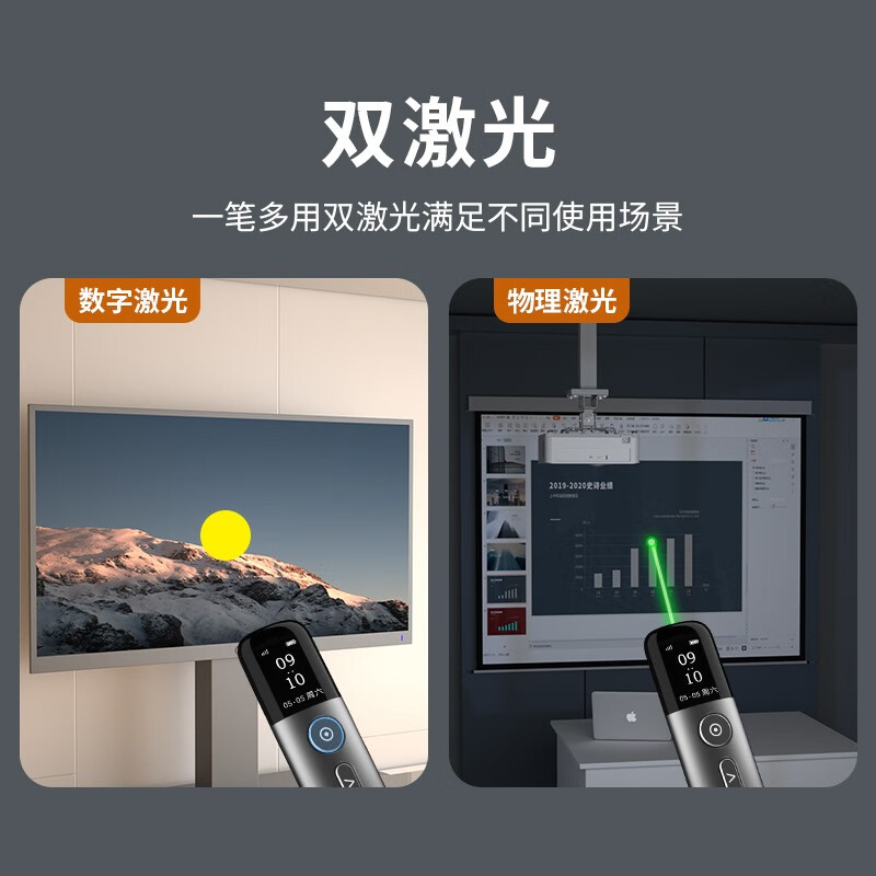 ASiNG大行A9 双激光翻页笔教师用液晶屏led放大凸显空中飞鼠PPT液晶屏幕时间显示 商务灰32G内存价格:499.00元!
