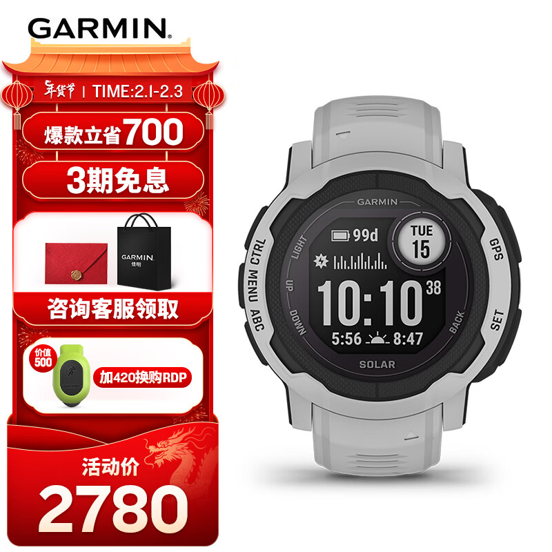 佳明(GARMIN)本能Instinct2太阳能运动版晨雾灰心率血氧跑步游泳户外运动手表价格:2780.00元!