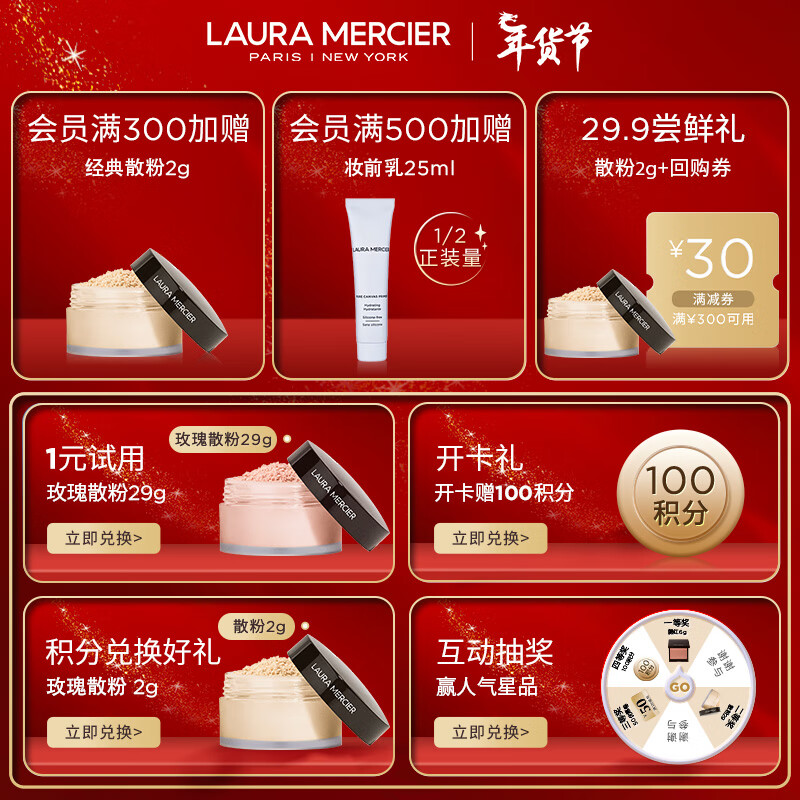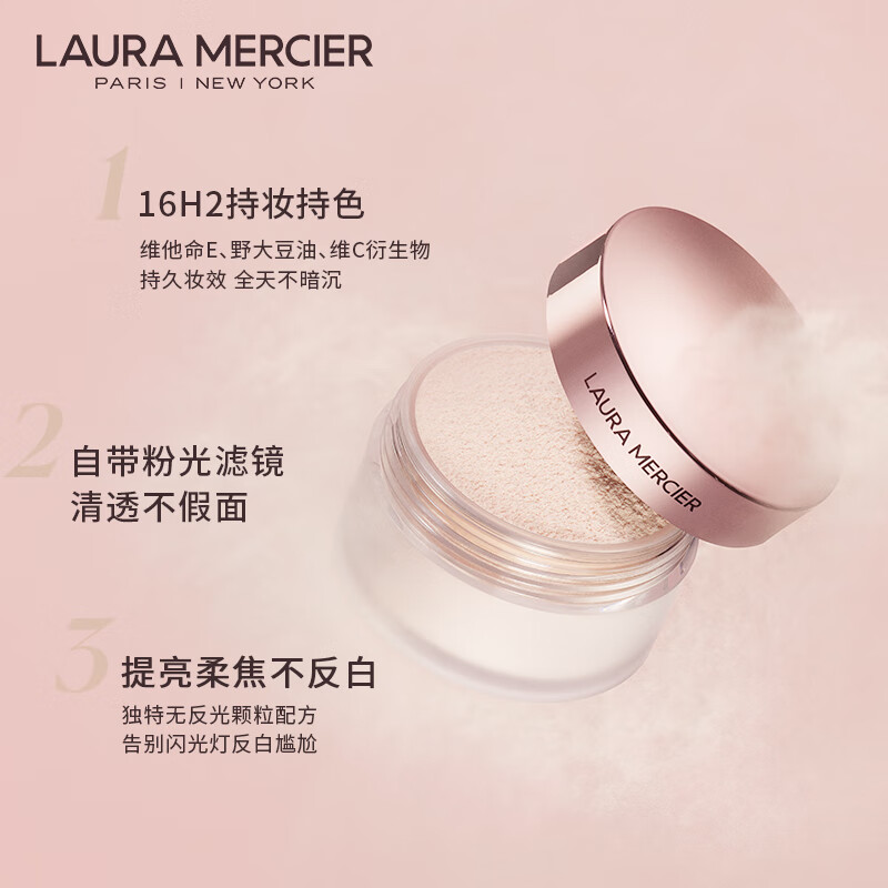 罗拉玛希 (LAURA MERCIER)焕颜清透蜜粉玫瑰粉29g散粉定妆粉控油补妆新年礼物情人节礼物女价格:380.00元!