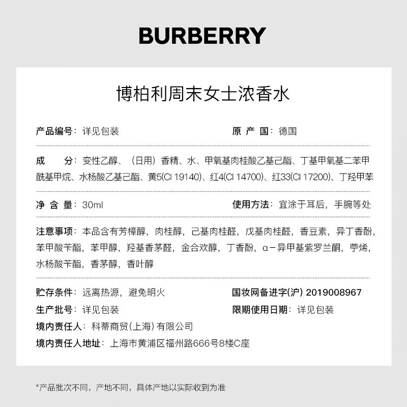 博柏利(BURBERRY)女士浓香水 30ml 新年情人节生日礼物送女友送女生价格:429.00元!