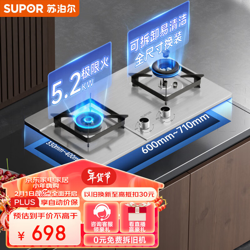 苏泊尔(SUPOR)燃气灶双灶家用 天然气双灶具5.2kW升级猛火 易洁耐用不锈钢面板 台嵌两用灶具 DS37天价格:648.00元!