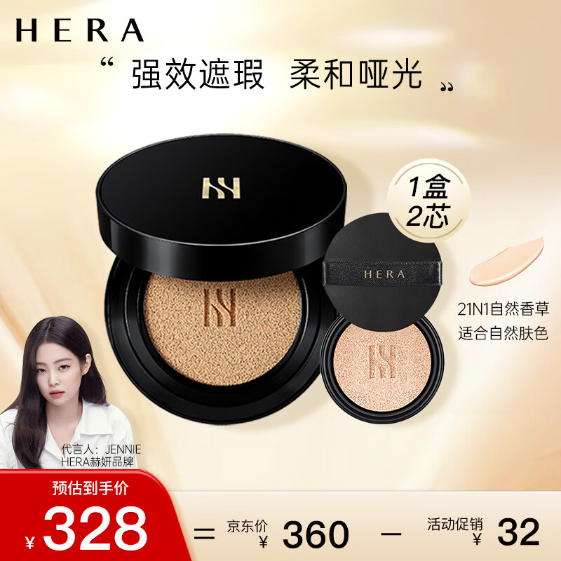 赫妍(HERA)黑金持妆哑光气垫 长效持久控油遮瑕 保湿防晒 21N1 15g*2价格:360.00元!