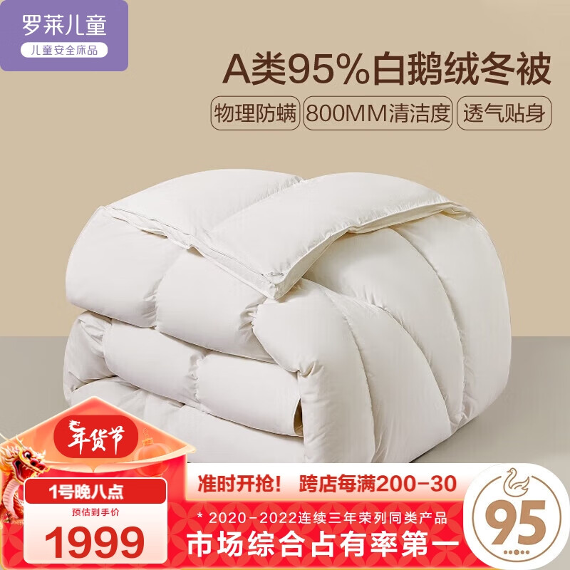 罗莱儿童A类防螨暖绒95白鹅绒冬被价格参考:
