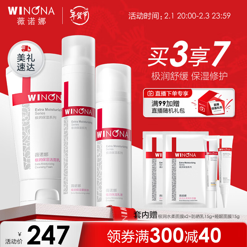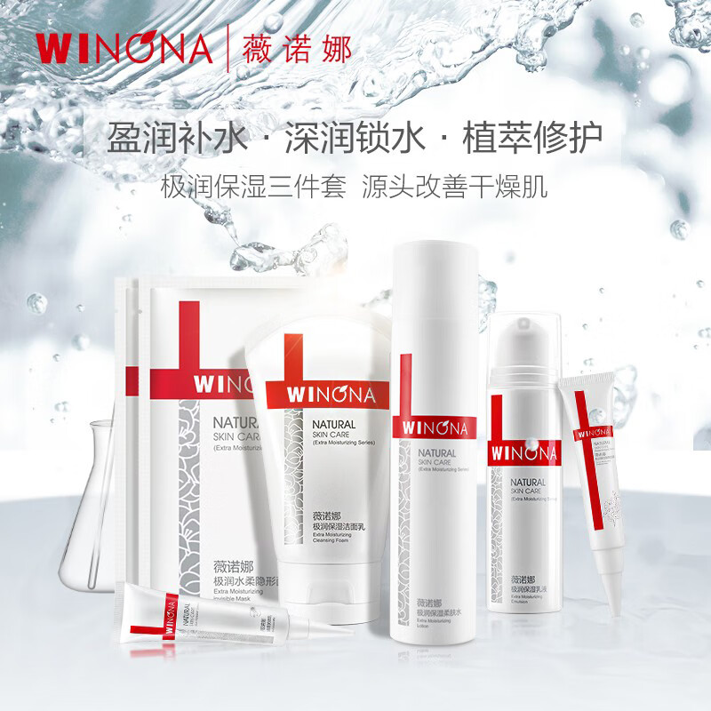 薇诺娜极润保湿三件洗面奶+爽肤水+乳液水乳护肤品套装化妆品价格:247.00元!