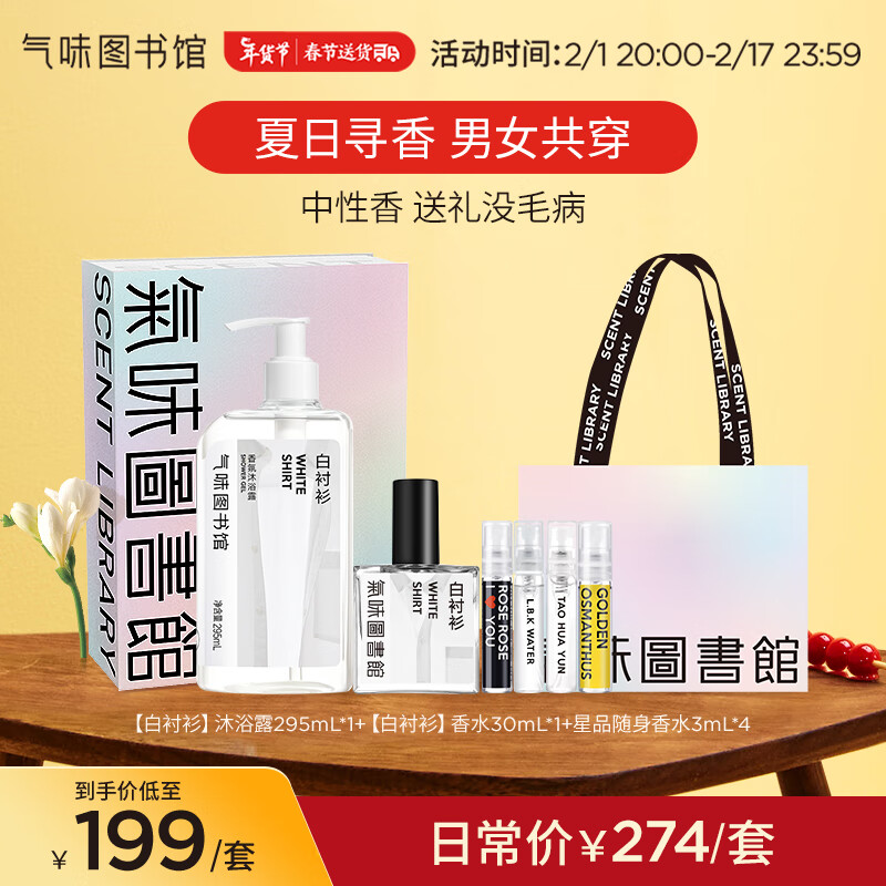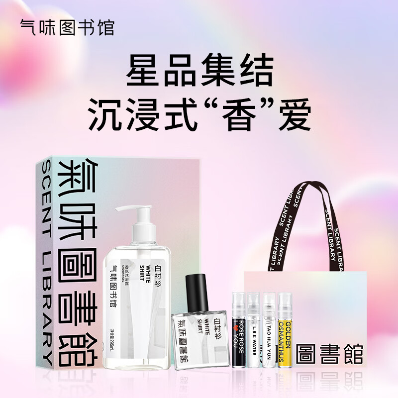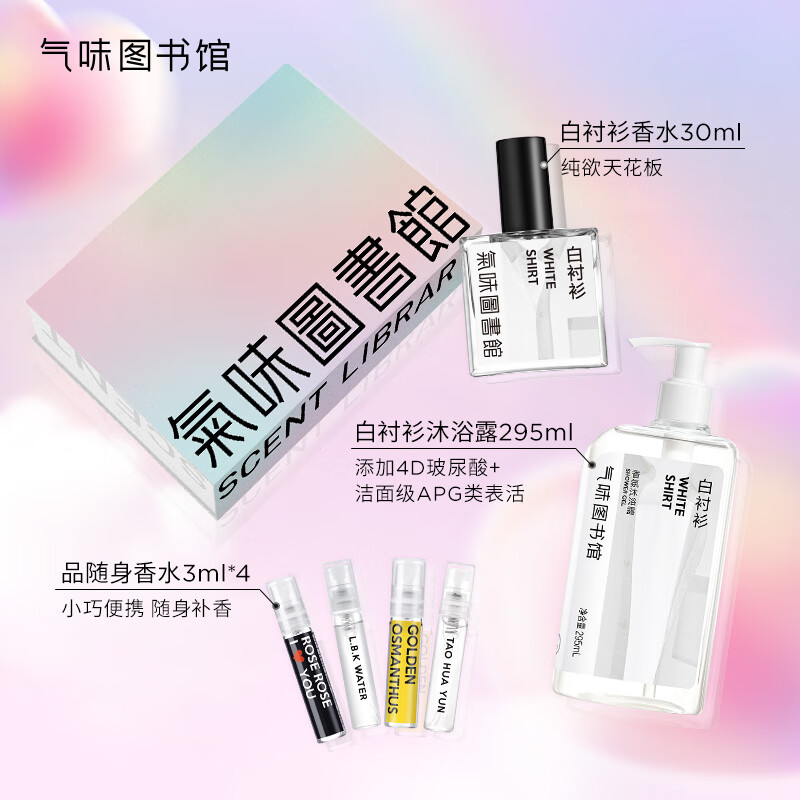 氣味圖書館(SCENT LIBRARY)白衬衫淡香水礼盒(30ml+295ml+3ml*4)男士香水礼盒送男女朋友礼物价格:274.00元!