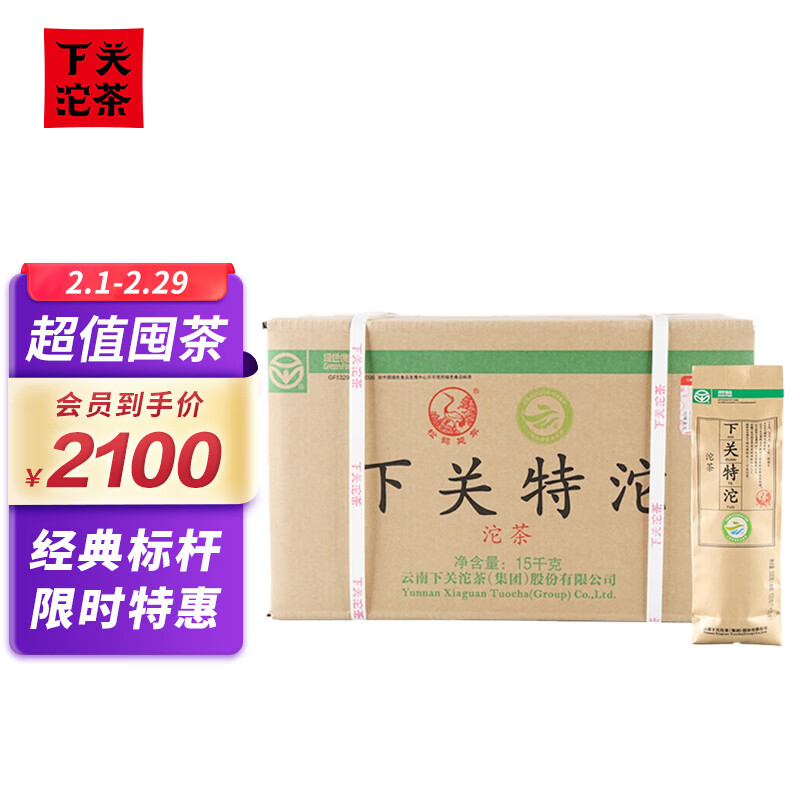 下关沱茶 普洱茶 普洱生茶 沱茶口粮茶 2023年特沱15kg(500g*30条)整箱价格:2100.00元!