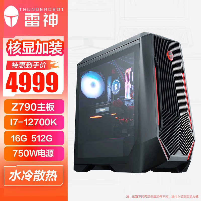 雷神(ThundeRobot)黑武士 烛龙 游戏台式电脑电竞主机(12代i7-12700K 16G 512G 水冷 Z790 750W)价格:4999.00元!