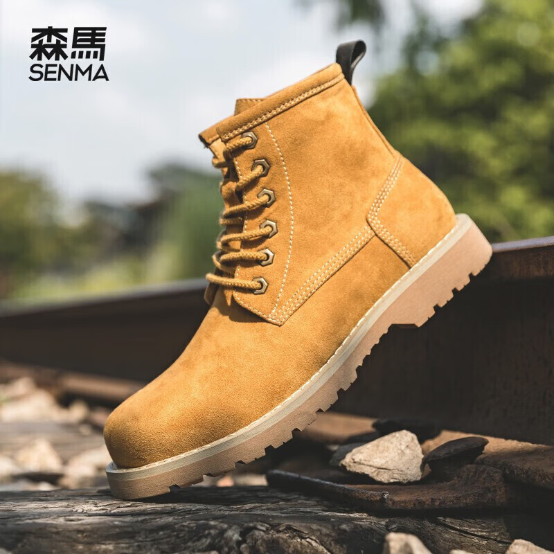 森馬(Senma)潮流时尚复古英伦高帮户外工装马丁靴男618414808 黄棕色 40码价格:239.00元!