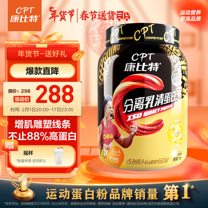 康比特分离乳清蛋白粉 88%高蛋白含量低脂低乳糖补充蛋白质健身增肌蛋白粉 分离乳清蛋白1.65磅/750g 酸奶味价格:288.00元!