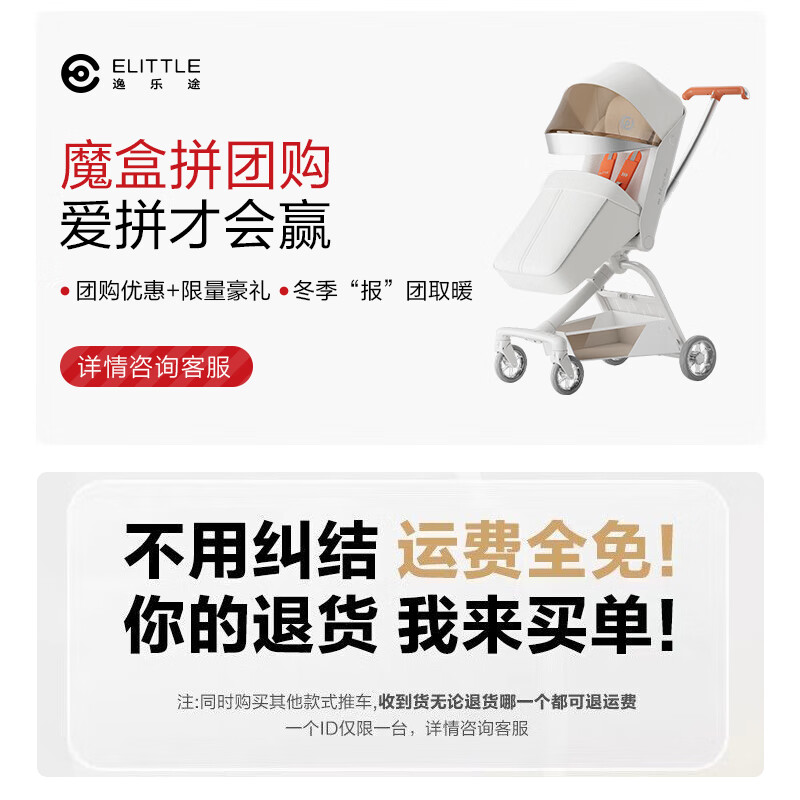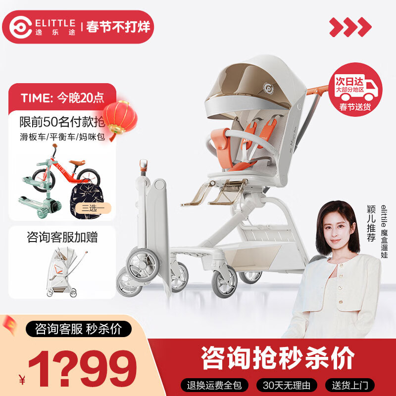 elittile逸乐途遛娃神器 婴儿推车可坐可躺轻便折叠双向高景观溜娃 F5魔盒 海天橙【咨询享】价格:1999.00元!