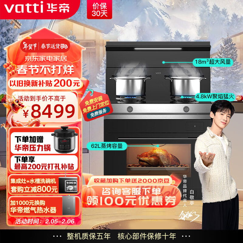 华帝(VATTI)集成灶蒸烤一体 集成灶一体式 蒸烤箱一体机 模块化设计 家用蒸烤箱燃气灶i3023Y液化气价格:8499.00元!
