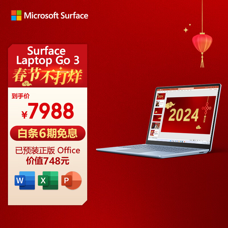 微软(Microsoft)Surface Laptop Go 3?笔记本电脑?i5 16G+256G冰晶蓝12.4英寸触屏 办公本学生轻薄本价格:7988.00元!