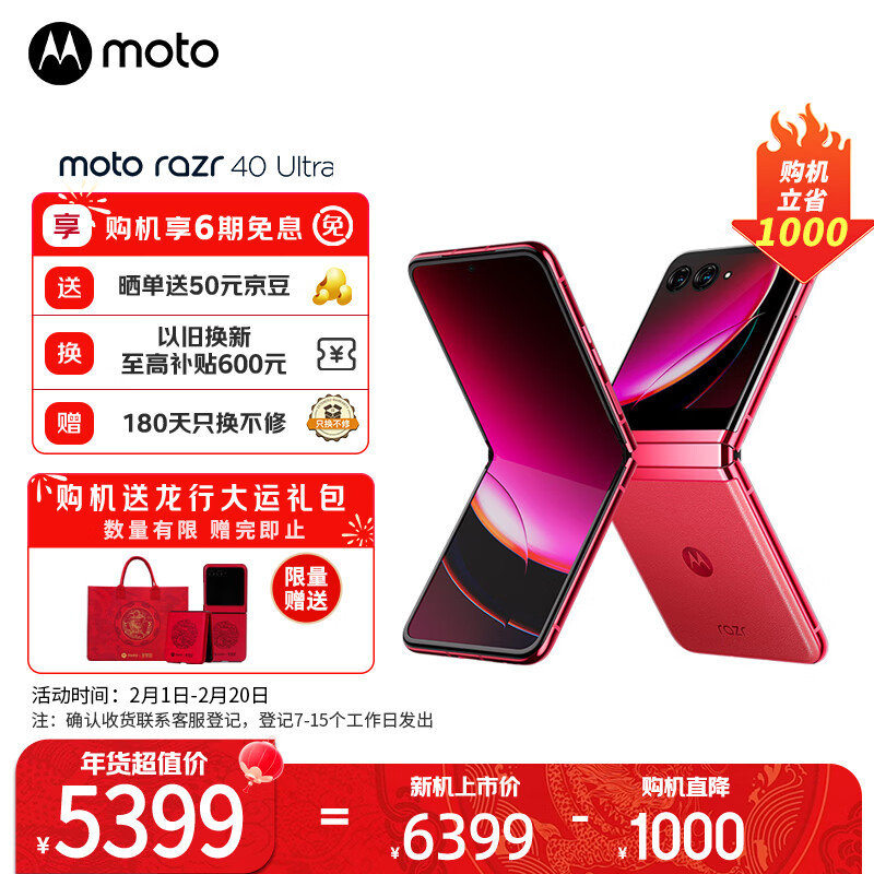 摩托罗拉moto razr 40 Ultra 掌心巨幕 外屏海量应用 骁龙8+ 5G折叠屏旗舰手机 12GB+512GB非凡洋红价格:5699.00元!