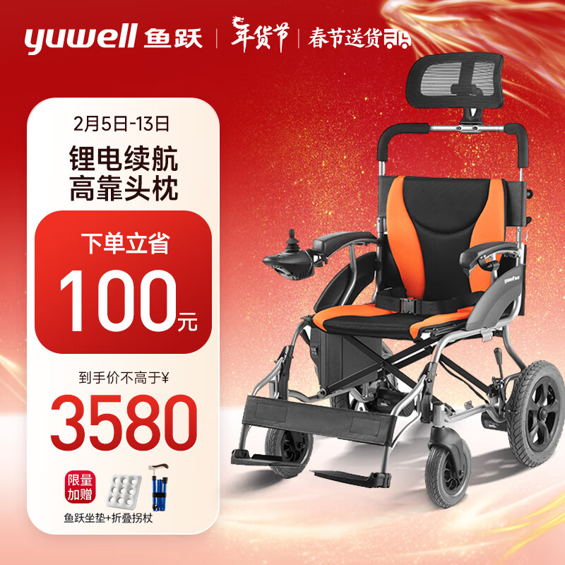 鱼跃(yuwell)电动轮椅车D210BL 老年人残疾人家用医用折叠轻便老人 智能自动代步车锂电池版12Ah价格:3680.00元!