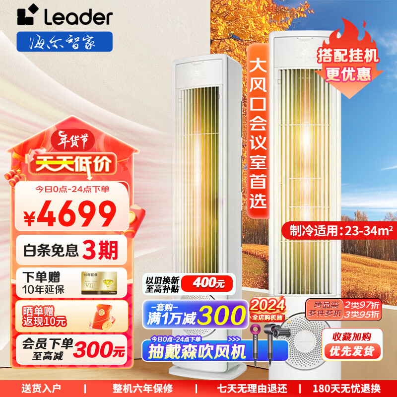 统帅(Leader)空调海尔空调出品 新一级能效2匹变频冷暖空调 WiFi智控立柜式空调风幕大出风口NFC 以旧换新50VEA价格:4699.00元!