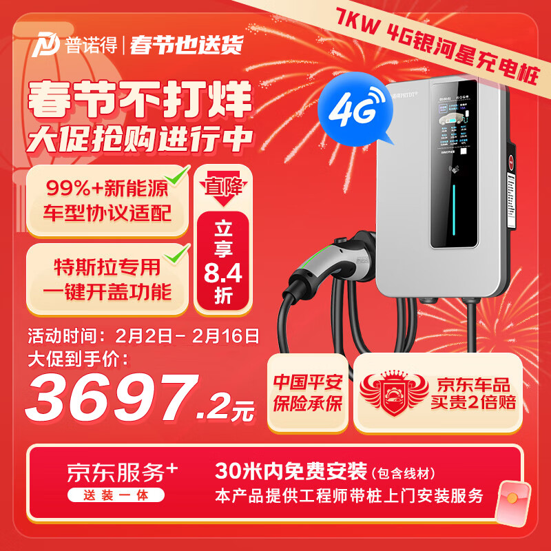 普诺得银河星4G版 7KW新能源电动汽车家用充电桩 适配于特斯拉比亚迪小鹏充电器送装一体含30米内安装价格:4380.00元!