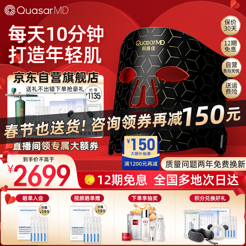 科施佳QuasarMD黑金面膜仪红光面罩面膜式美容仪光子嫩肤仪家用脸部大排灯修护亮肤情人节礼物送老婆价格:4099.00元!