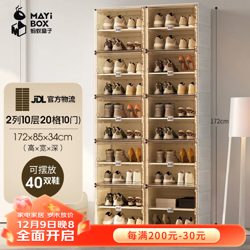 蚂蚁盒子免安装简易鞋柜门口家用折叠透明塑料超薄收纳架 鞋柜2列10层20格价格:649.00元!