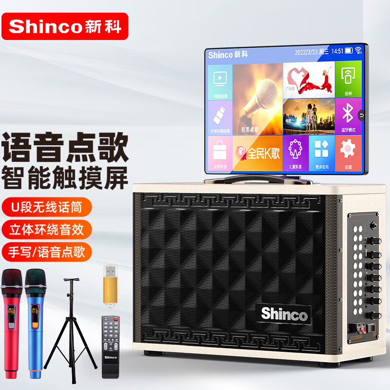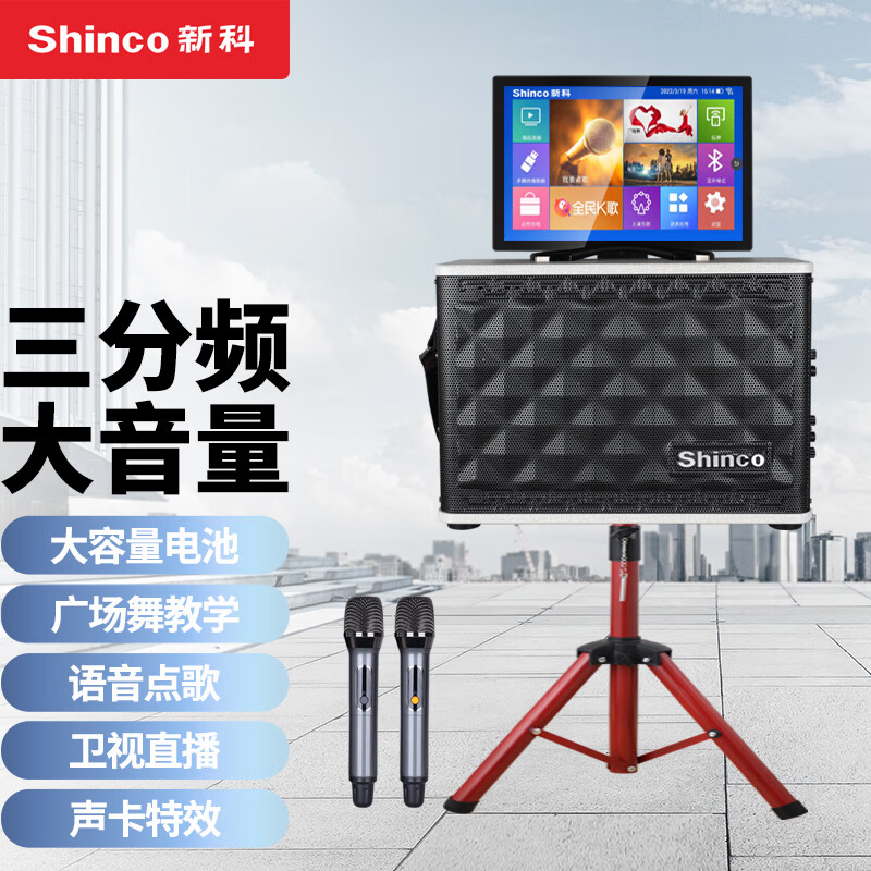 新科20S 广场舞音响带显示屏幕拉杆户外演出无线话筒k歌一体机大功率唱歌ktv音箱便携式视频家用 双咪价格:1880.00元!