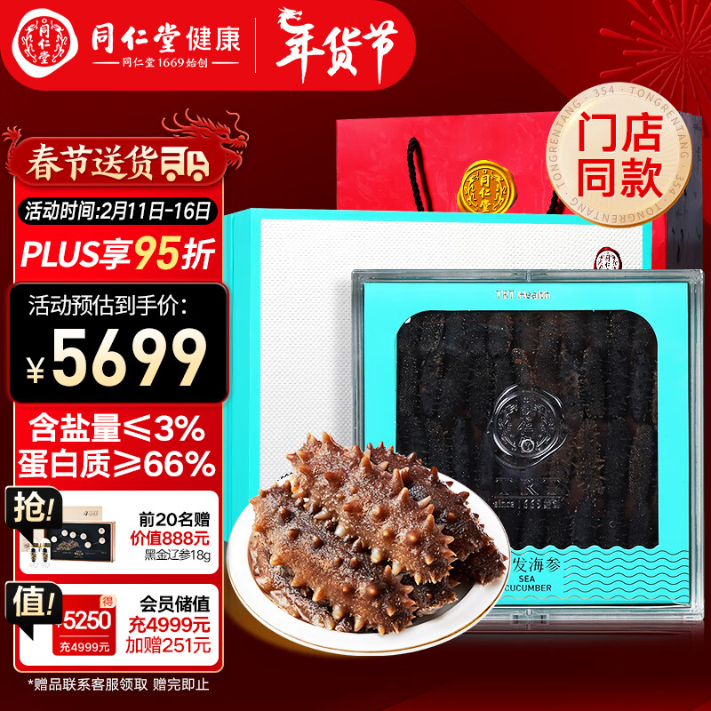 同仁堂(TRT)北京同仁堂大连淡干海参辽参净制128g42-51只简参干货过年礼盒价格:5699.00元!