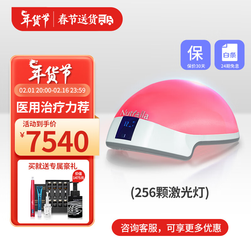 Nutralla妮雀娜 小蓝生发帽 256颗激光生发仪 红光头皮护理增发密发生发头盔 固发生发帽 粉色价格:8680.00元!