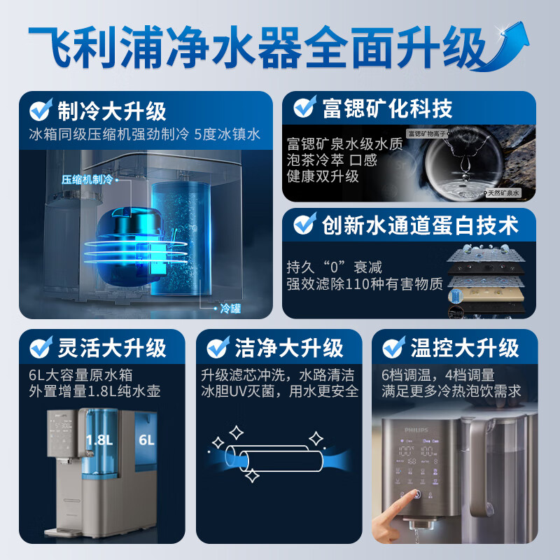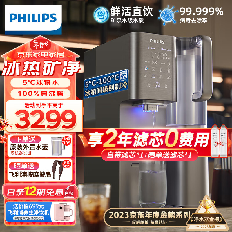 飞利浦(PHILIPS)净水器家用 冷热台式直饮机免安装净饮机水通道蛋白富锶矿化净水机冷热富锶升级款ADD6866价格:3299.00元!