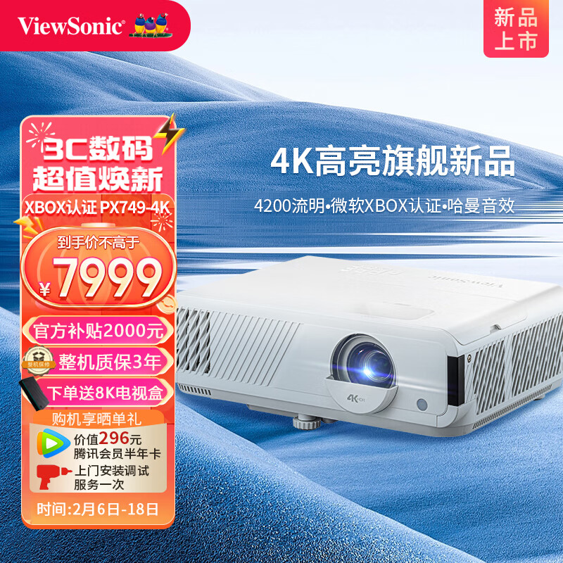 优派 PX749-4K 投影仪家用 投影机 家庭影院 客厅4K投影电视(微软Xbox认证 4200流明 1.3倍大变焦)价格:9999.00元!