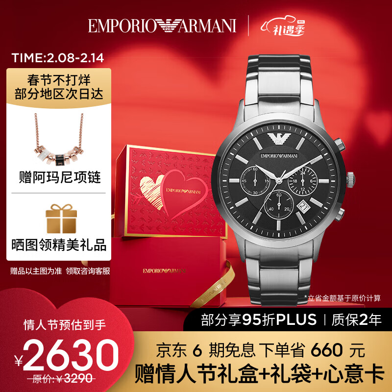 安普里奥·阿玛尼(Emporio Armani)手表男士 多功能三眼计时钢带石英欧美表情人节礼物新年送男友AR2434价格:2930.00元!