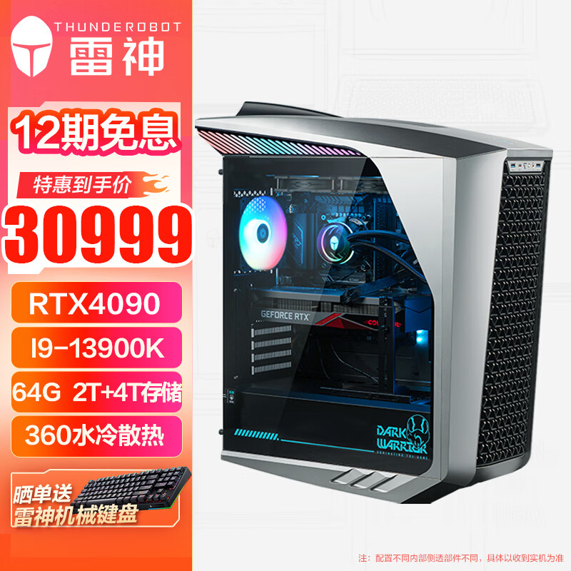 雷神(ThundeRobot)黑武士·Shark水冷游戏台式电脑电竞主机(13代i9-13900K RTX4090 64G 2TSSD+4T 360水冷)价格:30999.00元!