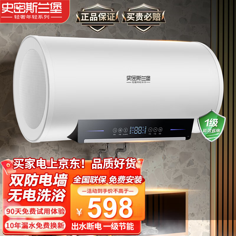 史密斯兰堡电热水器 家用40升L储水式2200W双重防护卫生间出租房速热洗澡淋浴机一级能效DSZF-T03Y40价格:568.00元!
