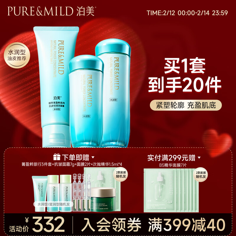 泊美(PURE & MILD)植物菁盈粹提亮肤色改善暗沉水润套装(洁面+爽肤水+乳液)价格:332.00元!