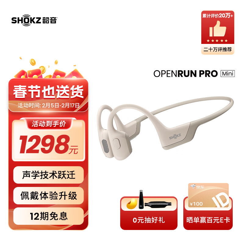 韶音(SHOKZ)OpenRun Pro骨传导蓝牙耳机开放式耳机运动无线耳骨传导耳机跑步骑行不入耳佩戴S810/S811 【适合女士和青少年使用】mini黄价格:1298.00元!