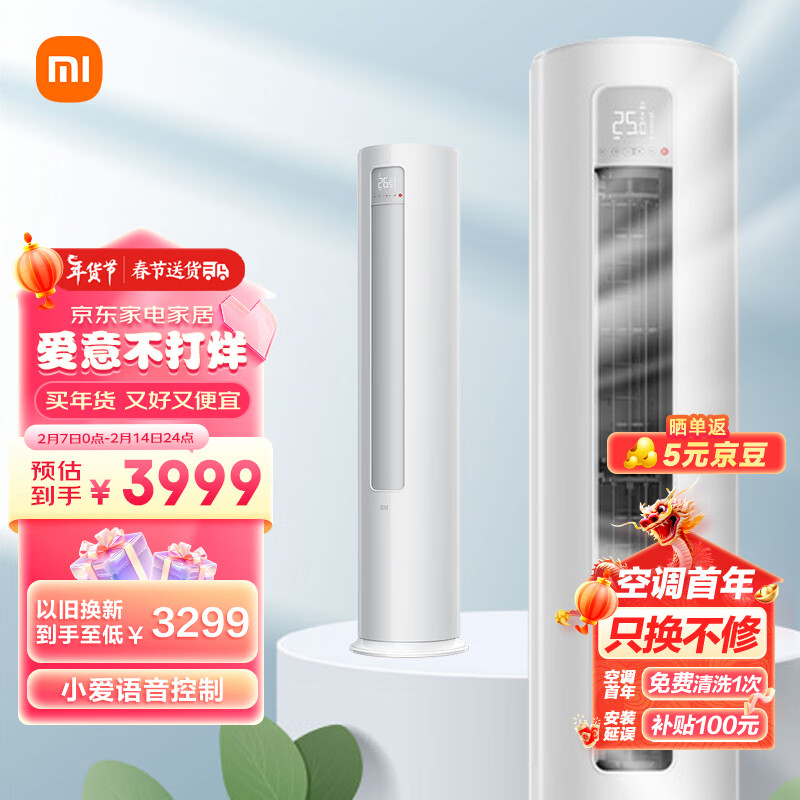 小米2匹 新一级能效 变频冷暖 智能自清洁 客厅圆柱空调立式柜机 KFR-51LW/N1A1 以旧换新价格:3999.00元!