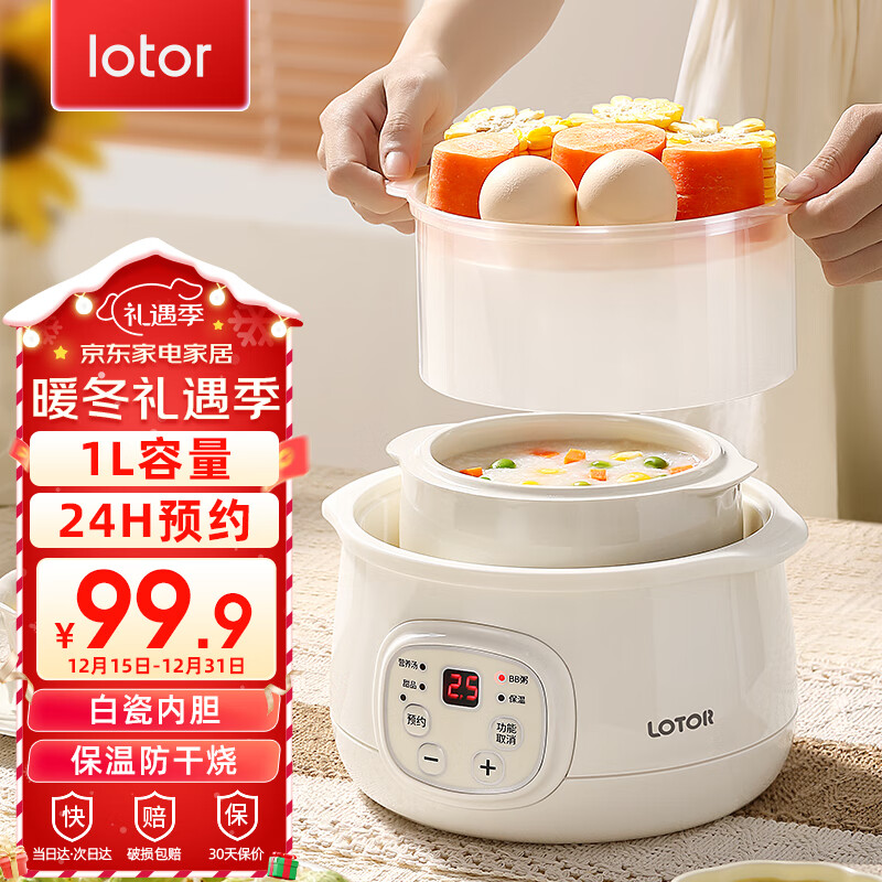 小浣熊电炖锅全自动炖汤锅煲汤煮粥神器隔水燕窝炖盅宝宝小炖锅1-2人陶瓷婴儿辅食锅熬粥专用锅 1L白色蒸笼款价格:99.90元!