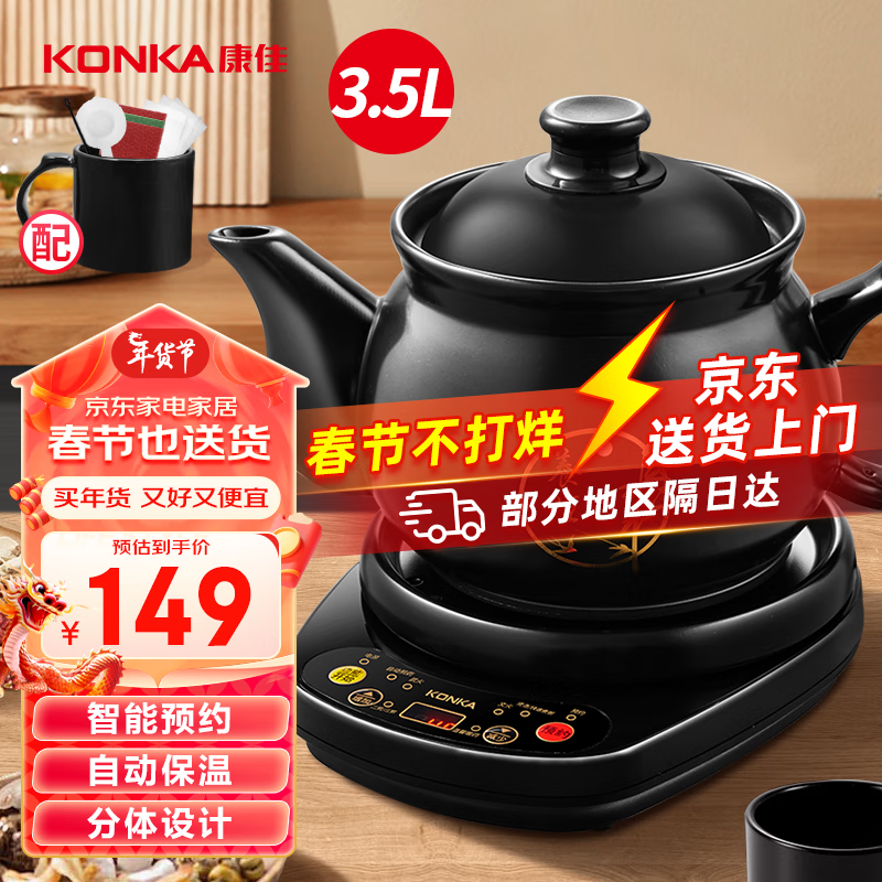 康佳(KONKA)煎药壶 中药壶 中药锅 熬药电砂锅 中药煲3.5升大容量分体式陶瓷全自动智能家用 KJYH-WHG602价格:149.00元!