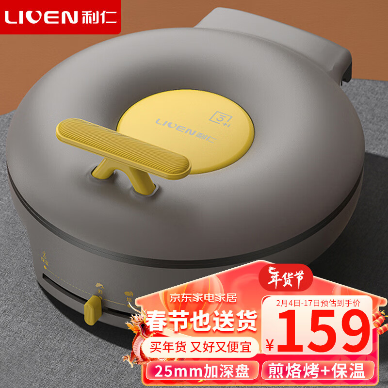利仁(Liven)电饼铛家用加深烤盘双面加热电饼档 煎饼锅电烙饼锅三明治早餐机电煎锅 煎烙烤+保温LR-J2606价格:159.00元!