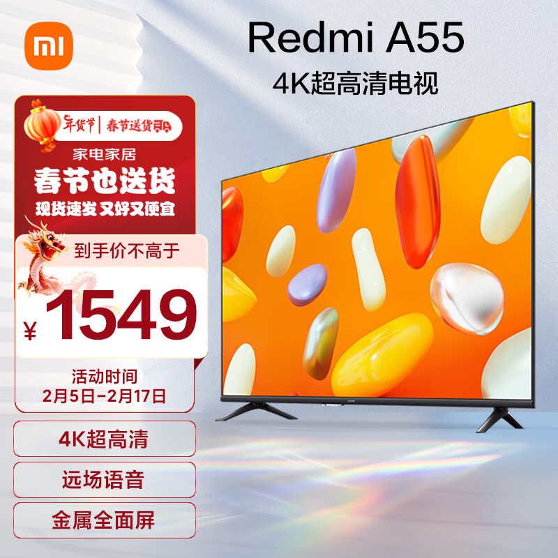 小米电视 Redmi 智能电视 A55 55英寸 2024款 4K超高清远场语音 金属屏 液晶护眼平板电视L55RA-RA价格:1546.00元!