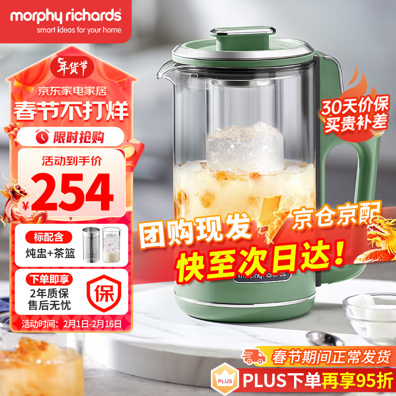 摩飞电器(Morphyrichards)养生壶 便携迷你煮茶器 烧水壶养生杯 小型办公室家用多功能煮茶壶一体式热水壶0.6L MR6086 绿价格:254.00元!