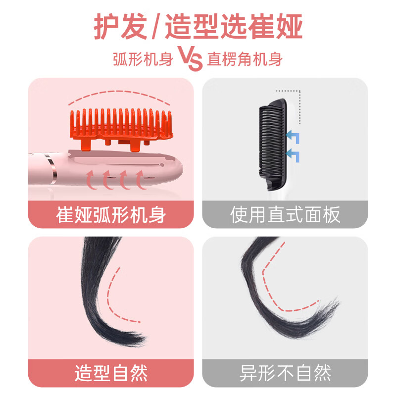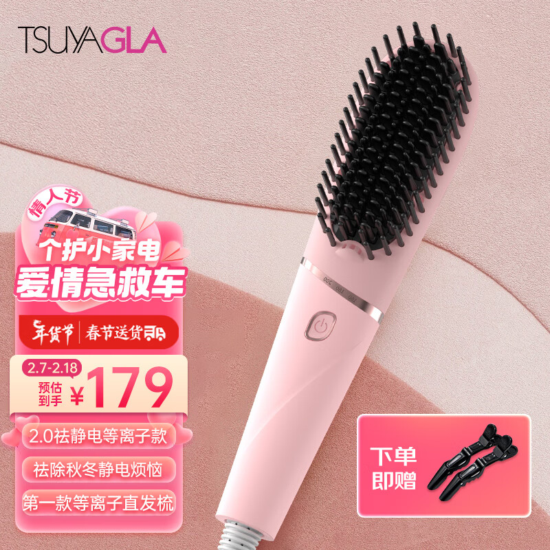 崔娅(TSUYAGLA)直发梳等离子直发梳造型梳子不伤发直卷两用梳子电梳子直发夹板秋冬季祛静电石榴粉价格:219.00元!