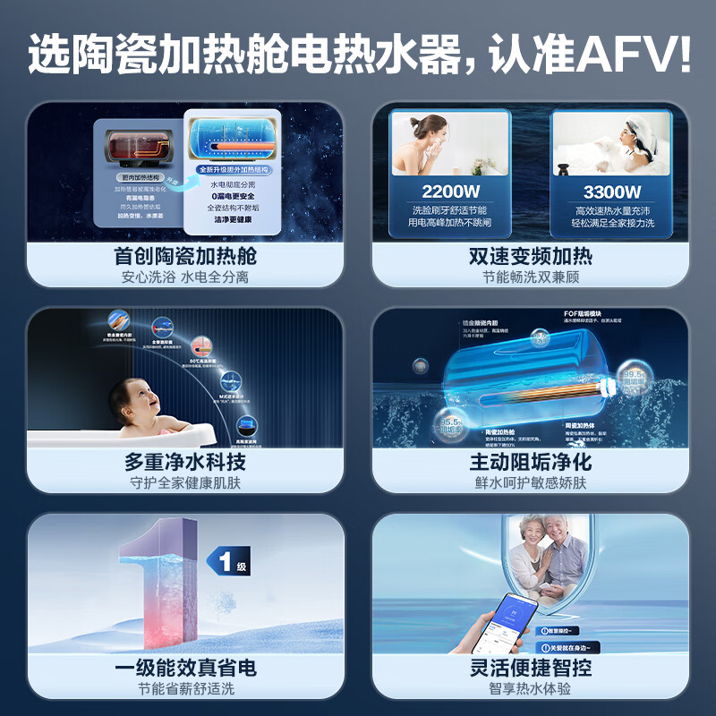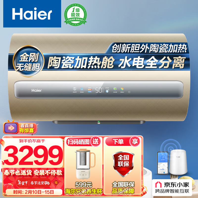 海尔(Haier)60升家用电热水器陶瓷加热舱3300W速热智慧变频水电分离零垢免清洗ES60H-AFV(2A)U1 京东小家智能价格:3599.00元!