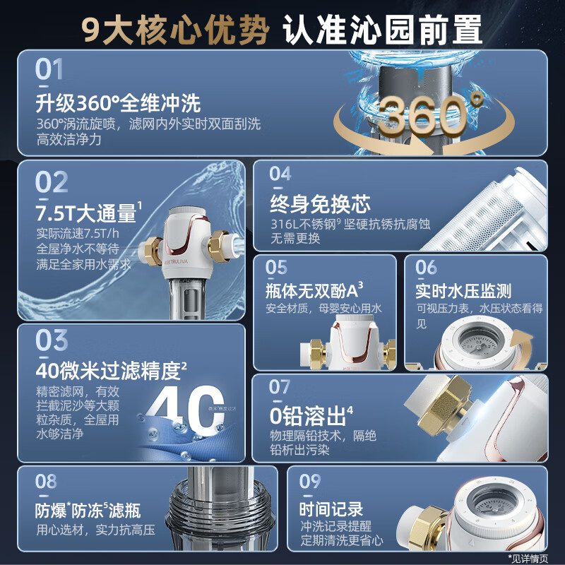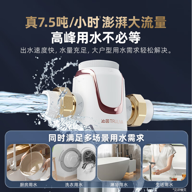 沁园(TRULIVA)升级款顶配前置过滤器 7.5吨/小时大流量 全屋家用净水器P-S5516价格:549.00元!