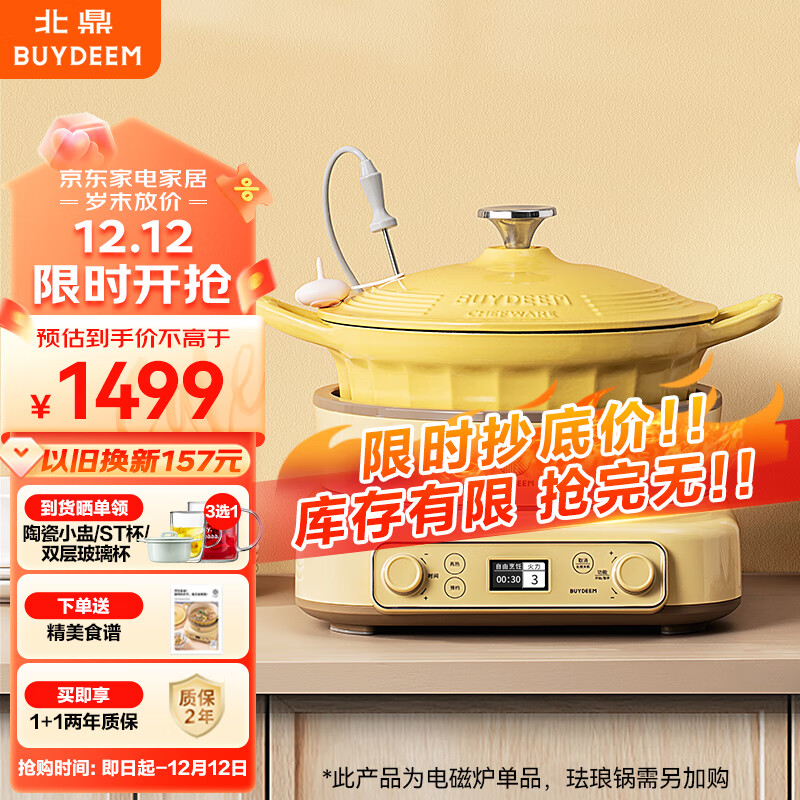 北鼎(Buydeem) 电磁炉电陶炉多功能一体家用大功率全自动节能小型灶恒温匀火烹饪一键预约【小鹅黄】价格:1499.00元!